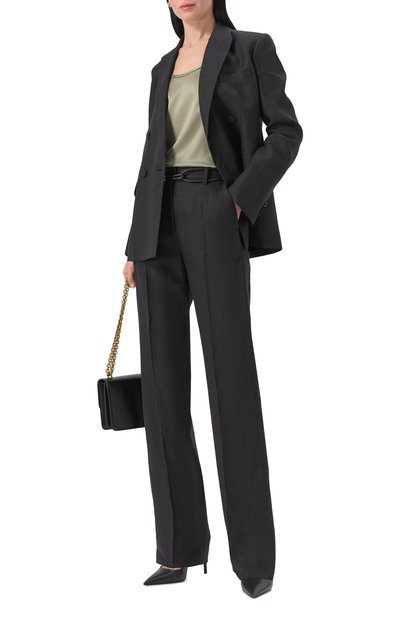 Укороченный топ с ажурным узором связали из укрепленной пряжи на основе вискозы из древесины деревьев, выращенных в управляемых лесах. Основания рифленых бретелей украсили золотистыми пуговицами Lion Head.