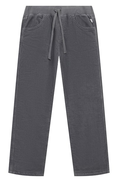 Брюки из эластичного хлопкового вельвета хорошо пропускают воздух и не сковываю движения. Модель с двумя парами боковых и задних карманов дополнили трикотажным поясом-кулиской.