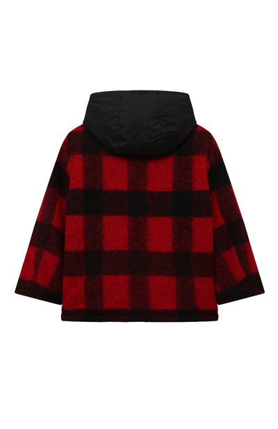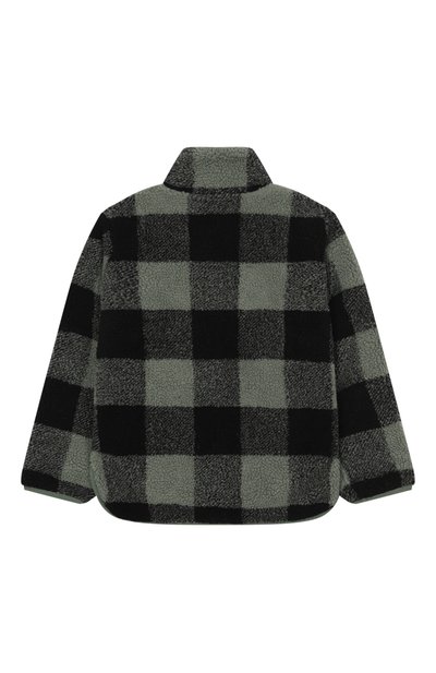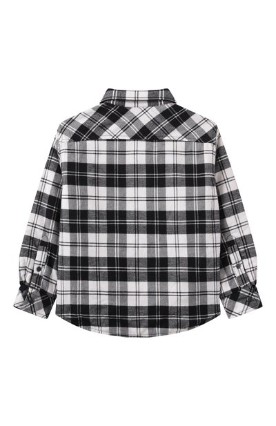 Клетчатую куртку-рубашку на кнопках выполнили из хлопковой фланели, а подкладку — из нейлона. Утепленную модель дополнили двумя накладными карманами, один из которых подчеркнули ярлыком с логотипом бренда.