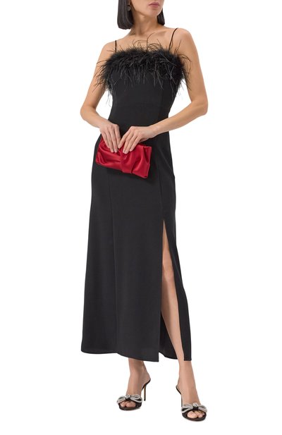 Почти невесомое миди-платье с тонкими бретелями выполнили из полупрозрачного джерси с атласным блеском. Предлагаем создать монохромный образ с жакетом oversize и ботфортами в тон.