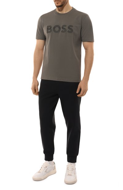 Прямую футболку с неглубокой круглой горловиной сшили из хлопкового джерси. Поверх изображения Луны спереди нанесли логотип марки.