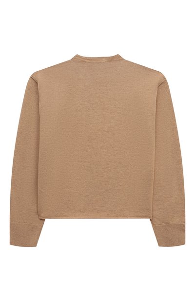 Пуловер с круглой горловиной в рубчик и рукавами реглан связали из ультрамягкой шерсти мериноса. Такой материал обеспечивает оптимальный микроклимат и не колется, поэтому в модели будет комфортно в течение всего дня.