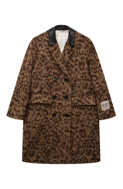 Двубортное пальто сшили из ворсового полушерстяного материала с добавлением акрила и полиэстера. Модель с воротником из экокожи и двумя карманами с клапанами дополнили фирменной нашивкой на рукаве.