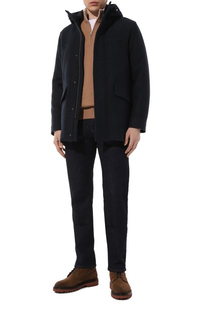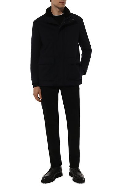 Куртку с двумя боковыми карманами и одним нагрудным на молнии выполнили из материала на основе шерсти. Изделие с двойным воротником и патами на рукавах застегивается молнией, скрытой планкой с кнопками. Внутри вещи из линии Field Jacket предусмотрели кулиску.