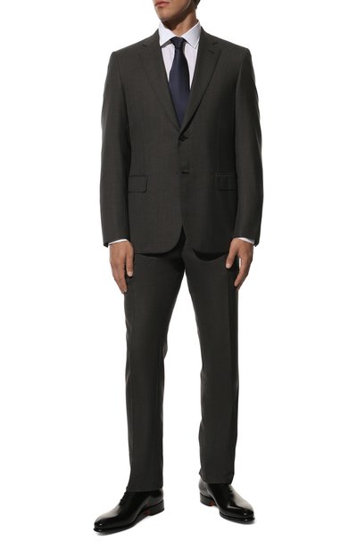 Оксфорды Adrian из гладкой кожи декорировали стичингом, вдохновленным узорами на брогах. Туфли с подошвой, окрашенной снизу в фирменный оранжевый цвет, выполнили по технологии Goodyear welted.
