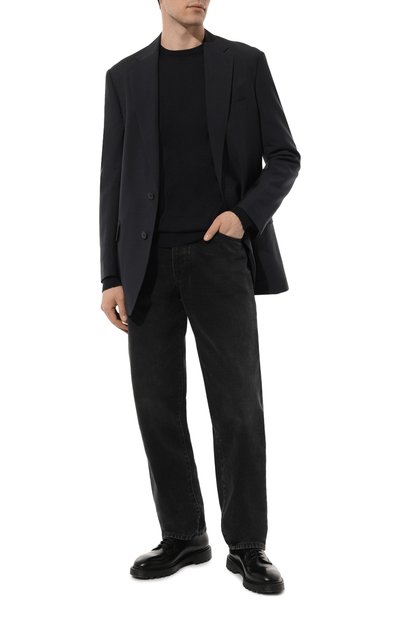 Джемпер с рукавами реглан сшили из тонкого трикотажа на основе шерсти. В материал включили шелк, чтобы модель с эластичными манжетами и поясом стала особенно мягкой и не пилинговалась.