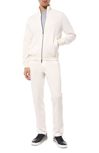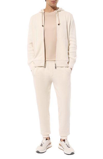 Толстовку с высоким воротом, рукавами реглан и двумя карманами на молниях сшили из хлопкового футера с добавлением нейлона. Модель из капсульной коллекции Travelwear украсили мотивом Eternal Balance спереди.