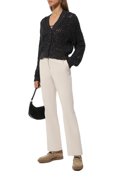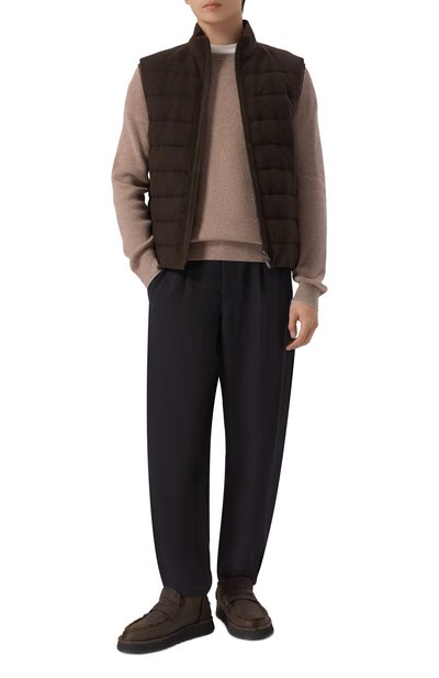 Внутренняя отделка из овчины и протекторная подошва из EVA делают замшевые лоферы подходящей обувью для прохладной погоды. Перемычку с прорезью украсили безникелевыми цепочками мониль.