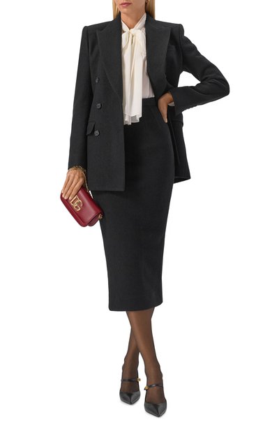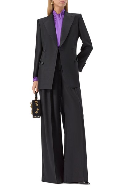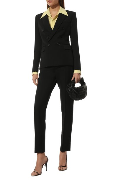 Двубортный жакет Turlington из эластичной шерсти в тонкую полоску дополнили тремя прорезными карманами и шелковым подкладом. Модель составит идеальный дуэт с парной юбкой-карандаш или классическими брюками.