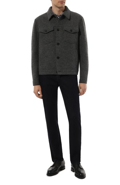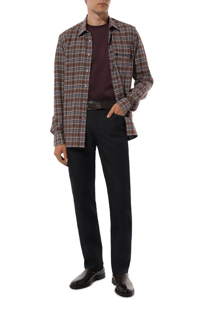 Джинсы с четырьмя карманами украшены накладкой и петлей сзади, позаимствованными у рабочей униформы. На поясе – брендированный патч в тон. Наши стилисты предлагают носить модель, сшитую из хлопка стрейч, с узорным поло.