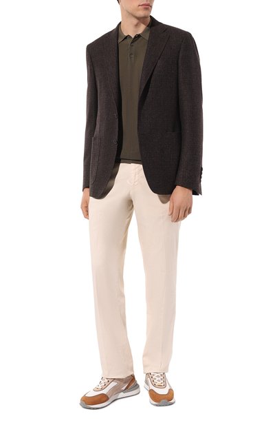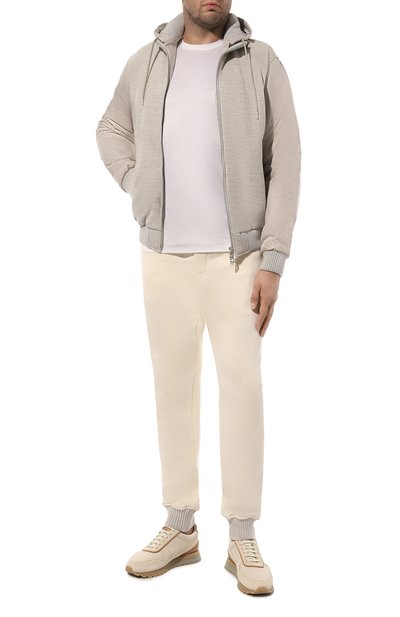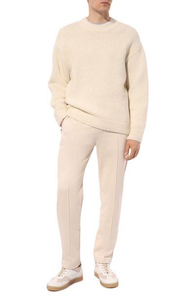 Джоггеры с эластичными поясом и манжетами легко вписать в непринужденные повседневные образы любой палитры. Для изготовления модели с тремя карманами и вышитым логотипом на брючине использовали флис на основе вискозы и хлопка.