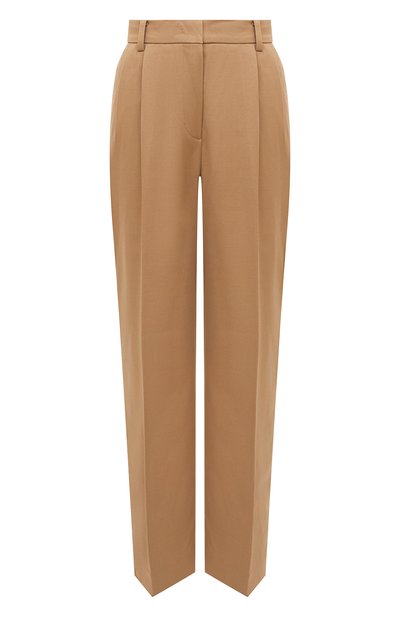 Для пошива прямых брюк с защипами, переходящими в стрелки, использовали смесовую немнущуюся ткань Woolhorn TR. Модель со шлевками для ремня на поясе дополнили боковыми карманами и прорезными задними с пуговицами.
