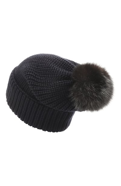 Шапку бини связали английской резинкой из шерстяной пряжи. Широкий отворот украсили крупной фирменной накладкой в виде литеры V.