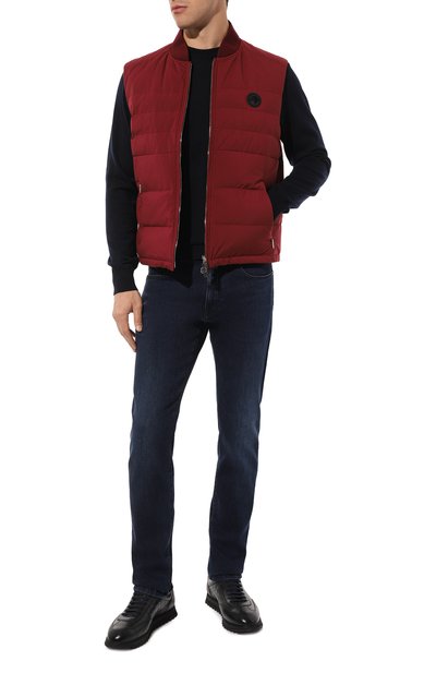Стеганый утепленный жилет с воротником-стойкой сшили из вельвета стрейч на основе полиэстера. Модель с внутренним и двумя внешними карманами застегивается молнией и брендированными кнопками, с которыми рифмуется логотип на груди.