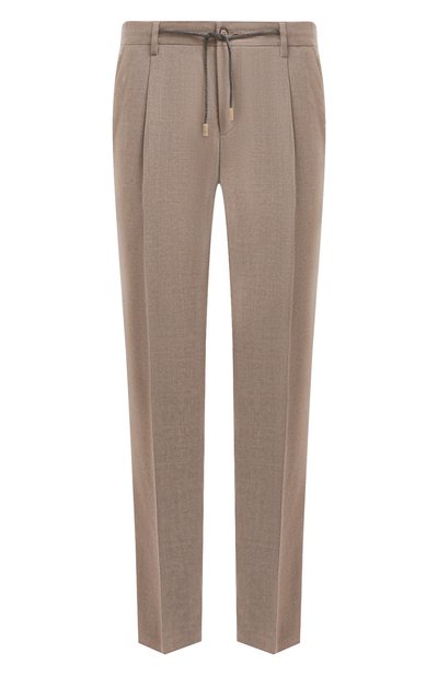 Брюки Ed со стрелками сшили из шерстяной ткани с добавлением стрейчевых волокон. Модель с боковыми карманами и прорезными задними с клапанами дополнили на поясе со шлевками эластичными вставками и кулиской, позволяющими обойтись без ремня.
