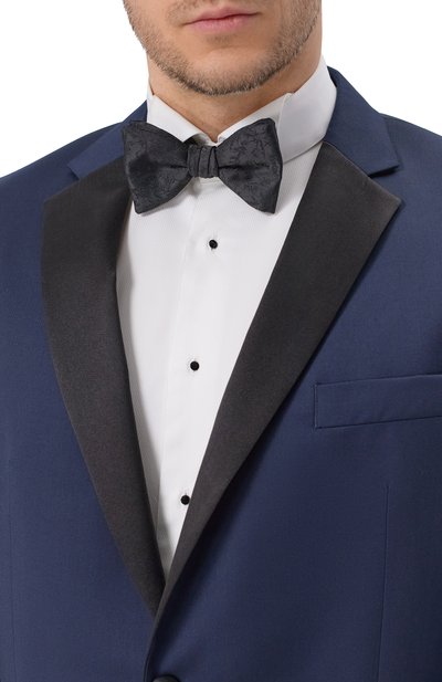 Галстук-бабочку формы Butterfly выполнили из шелковой ткани с жаккардовым анималистичным узором. Аксессуар Pre-Tied фиксируется сзади крючком.