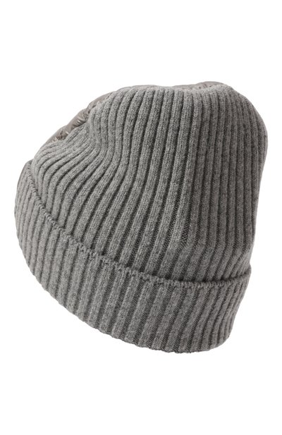 Эластичную шапку бини с отворотом и подкладом из теплои золирующего влагостойкого материала Polar-Tech связали из смесовой пряжи с добавлением шерсти и кашемира. Модель с брендированной пластиной спереди дополнили стеганой вставкой из японского нейлона, утепленной гусиным пухом.