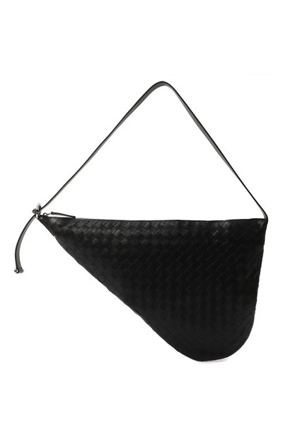 Название асимметричной сумки Virgule переводится с французского как «запятая». Аксессуар с регулируемым ремнем изготовили в технике intreccio ad inserto из телячьей кожи, дополнив подкладом из замши. Модель и внутренний карман застегиваются молниями.