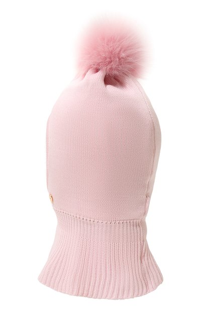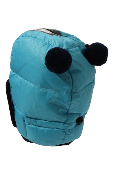 Шапку-балаклаву с двумя съемными помпонами выполнили из водоотталкивающего нейлонового микрорипстопа и наполнили утиным пухом с пером. Модель с вентиляционной сетчатой вставкой и брендированным принтом дополнили застежкой велкро спереди и кулиской сзади.