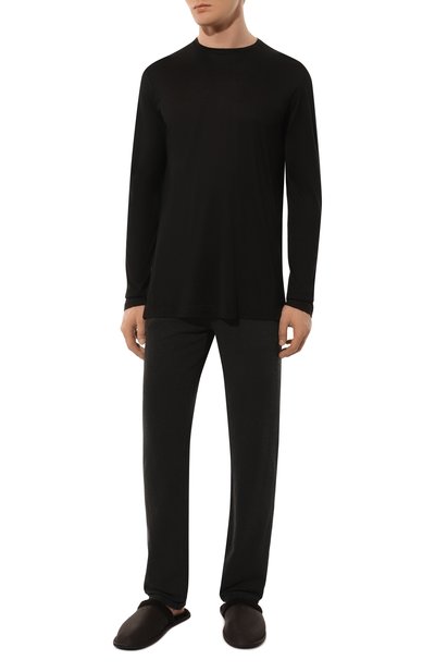 Лонгслив с круглой горловиной сшили из гладкого шелкового джерси. Прямая модель идеально дополнит образ для домашнего отдыха или сна.