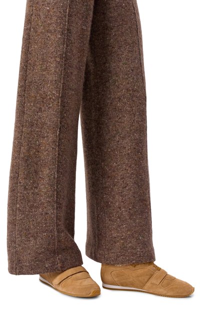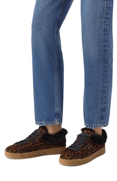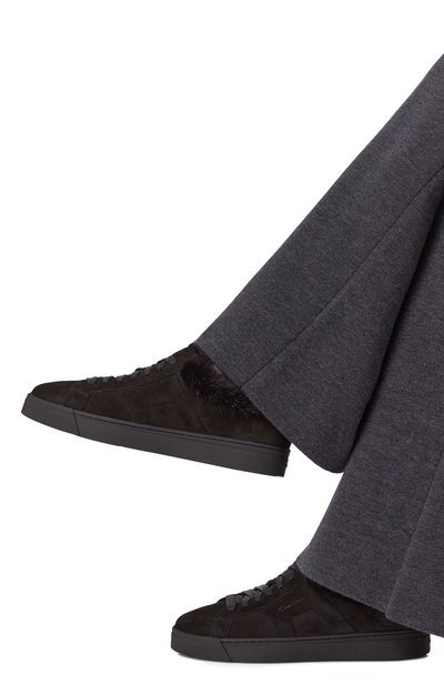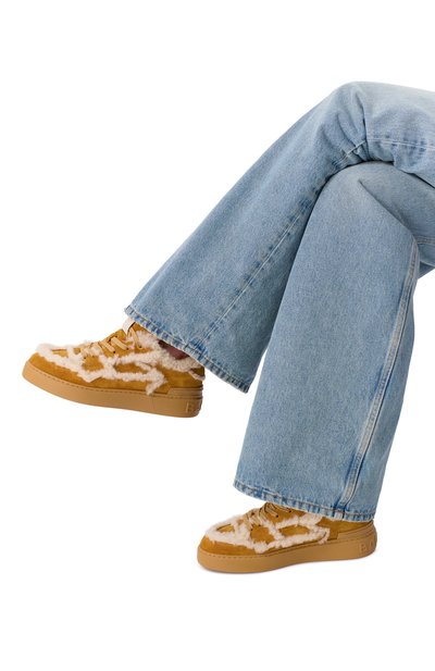 Кеды изготовили из густой овчины, а для отделки и подкладки использовали кожу. Язычок с тисненым узором и одну из боковых вставок, вдохновленных фирменными монками, украсили логотипом бренда.