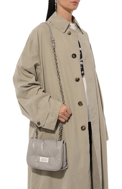 Сумку Glam Slam Classique со съемным регулируемым ремнем, вдохновленную французскими стегаными одеялами, сшили из наппы с объемным мотивом, созданным термосварным методом. Основное отделение с внутренним карманом на молнии закрывается магнитным рамочным замком. На передней панели – накладка с фирменным числовым кодом.
