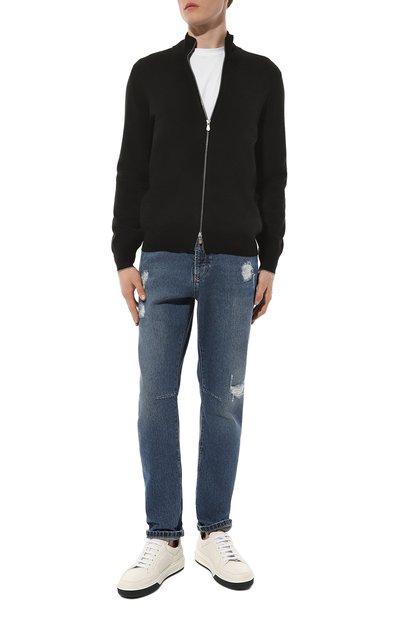 Для изготовления кардигана на молнии использовали трикотаж из чистой шерсти. Модель с высокой горловиной, манжетами и поясом в рубчик украсили спереди геральдической вышивкой в виде монограммы DG.