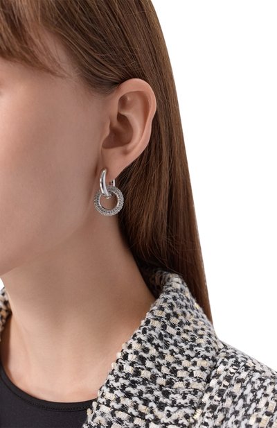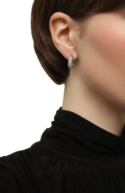 Серьги Hyperbola с застежками-пусетами выполнили из латуни. Модель, словно собранную из четырех полуколец, украсили цир конием, оставив одно из них без декора..