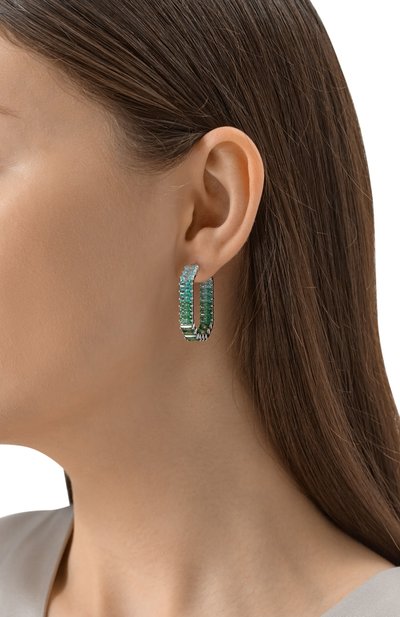 Серьги Millenia с застежкой-пусет выполнили из латуни с родиевым покрытием. В четыре звена с крапановыми креплениями поместили кристаллы ReCreated™, создающие цветовой градиент.