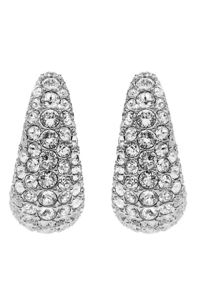 Клипсы Sublima инкрустировали кристаллами, сложенными в узор Meteora. Каплеобразный аксессуар выполнили из латуни с гальваническим покрытием родием.