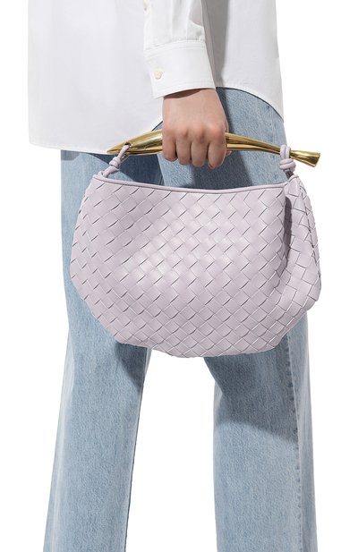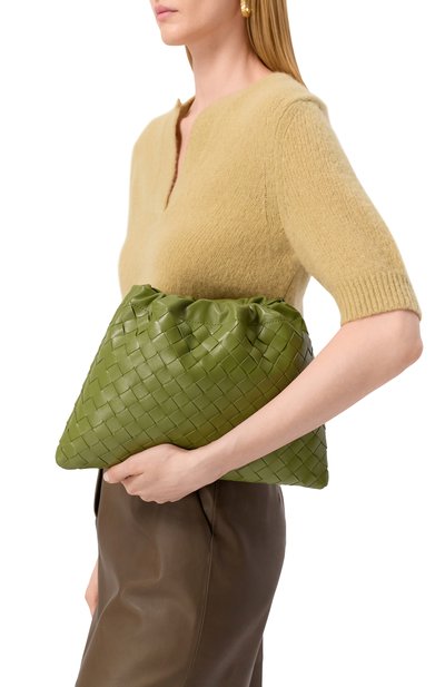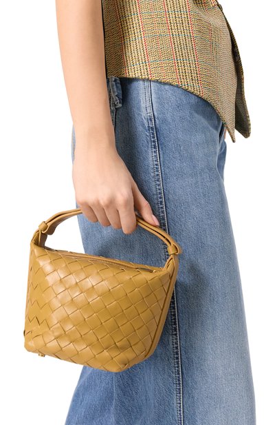 Принадлежность сумки Wallace бренду подчеркнули ручным плетением intreccio ad inserto из телячьей кожи. Дно защитили металлическими пуклями, а боковые панели усилили гладкими накладками, которые переходят в регулируемую ручку с кнопками. Аксессуар застегивается молнией.