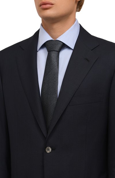 Галстук из шелка малберри с жаккардовым шевронным узором завершит образ для офиса со строгим дресс-кодом. Аксессуар средней ширины дополнили подкладом, чтобы он лучше держал форму.