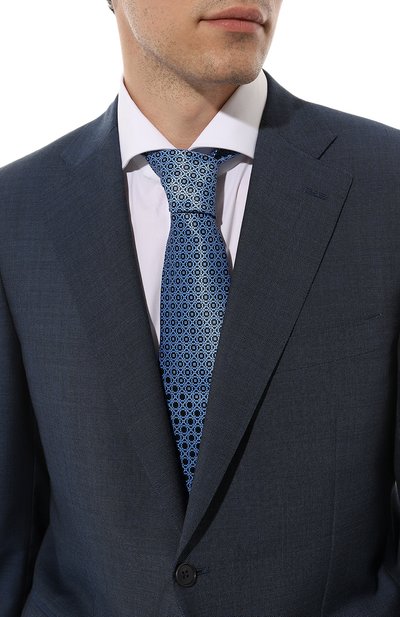 Для изготовления галстука стандартной ширины выбрали шелк малберри с геометрическим узором. Материал соединили с подкладом, сложили несколько раз и закрепили эластичным ручным швом.