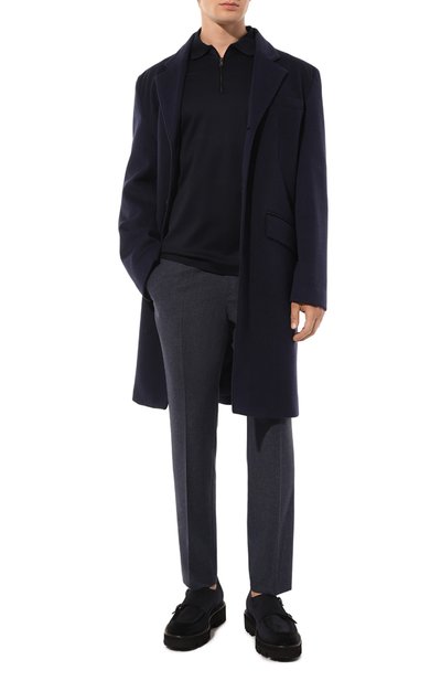 Брюки с эффектом Salt and Pepper изготовили из полушерстяной ткани с добавлением шелка и нейлона. Модель со стрелками и пятью карманами станет основой образов в стиле smart casual.