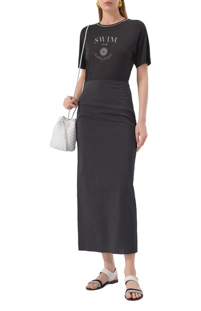 Футболка с крупным флокированным логотипом на груди впишется в повседневные образы с юбкой или джинсами. Модель сшили из легкого хлопкового джерси.