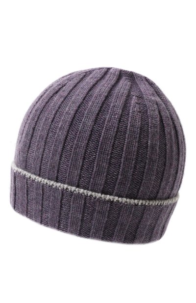Шапку бини связали из кашемировой пряжи, подчеркнув рифленый узор двумя оттенками. Широкий отворот декорировали нашивкой с тисненым логотипом.