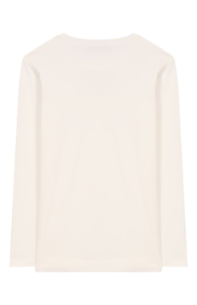 Лонгслив из коллекции Après-ski выполнили из плотного хлопка. Спереди модель украсили вышитым логотипом бренда и принтом с изображением Снупи из комиксов Peanuts, подчеркнув часть узора стразами.