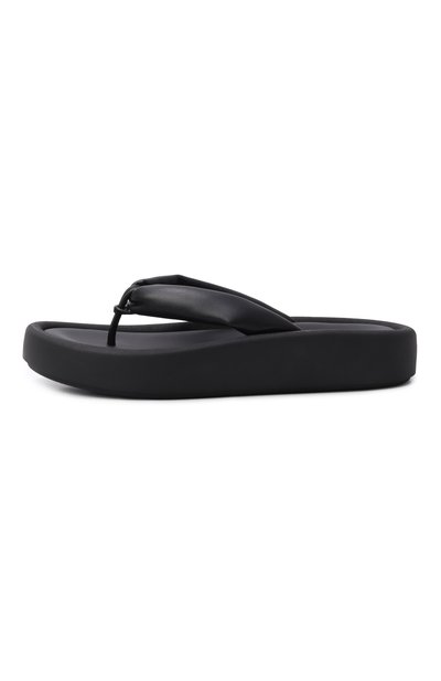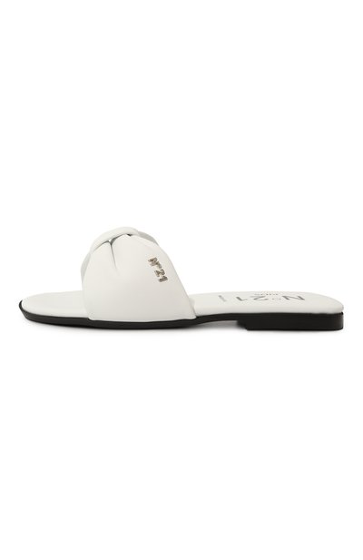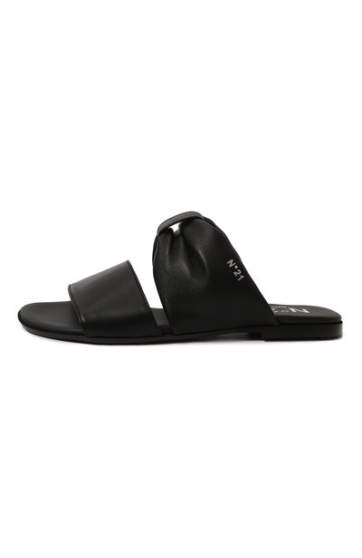 Шлепанцы на тонкой подошве с низким каблуком сшиты из матовой кожи. Драпированная широкая перемычка, напоминающая бант, украшена сбоку металлическим логотипом марки.