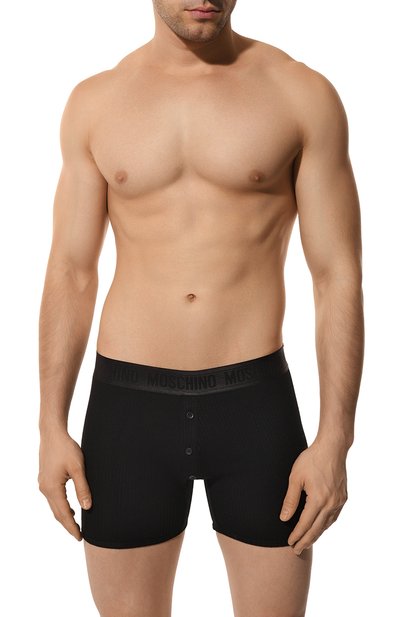 Облегающие боксеры с эластичным поясом, украшенным логотипом, дополнили тремя пуговицами на гульфике. Трусы сшили из эластичного хлопкового трикотажа с добавлением модала.