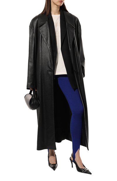 Футболку с вышитым спереди логотипом выполнили из органического хлопка. Уже готовую вещь с приспущенной линией плеч окрасили в технике градиент.