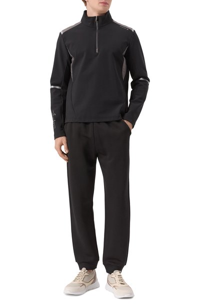 Кроссовки на гибкой подошве с устойчивым протектором сшили из стираной замши, гладкой и зернистой кожи. Принадлежность марке обозначили нашивкой с логотипом на язычке и эмблемой Solomeo на заднике.