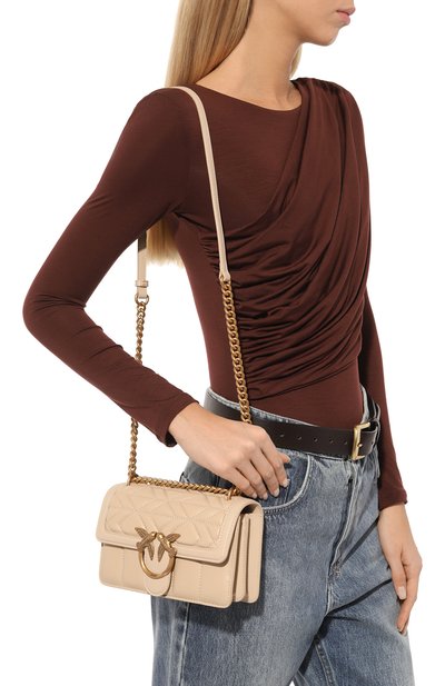 Сумку Tribeca с внутренним карманом и брендированным замком сшили из кожи с графичным стеганым мотивом. Модель дополнили скользящим ремнем-цепочкой с мягкими вставками.
