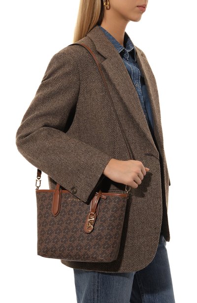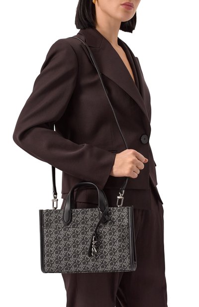 Сумку Scarlett с двумя короткими ручками и съемным плечевым ремнем выполнили из брендированного текстиля с полимерным покрытием. Модель с двумя внутренними карманами застегивается магнитной кнопкой. В комплекте — брелок.