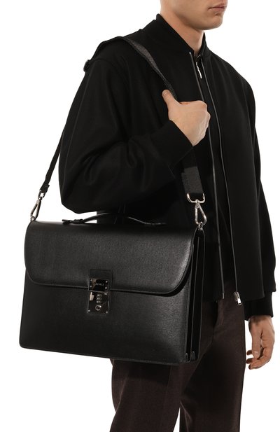 Портфель Côme с короткой ручкой и текстильным плечевым ремнем сшит из зернистой воловьей кожи. Широкий клапан дополнен кнопочным замком с рутениевым покрытием. Для правильной организации пространства внутри предусмотрели отсек для ноутбука, отделение для бумаг и держатели ручек. Накладной карман застегивается молнией. На задней панели расположен плоский слот и ремешок для фиксации аксессуара на чемодане.