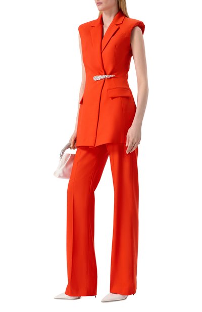 Укороченные брюки со стрелками и отворотами станут ярким акцентом в повседневном образе. Для пошива модели с широким поясом-кулиской и четырьмя карманами использовали чистый кашемир.