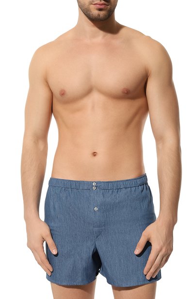 Боксеры из линии DB1 сшили из чистого хлопка с жаккардовым микроузором. Трусы с анатомической ластовицей и конструкцией inside support дополнили пуговицами на гульфике и эластичном поясе спереди.
