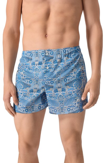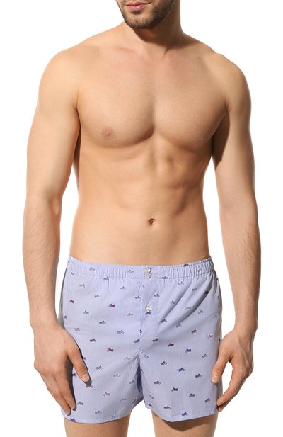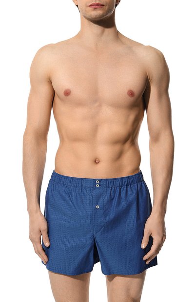Боксеры DB1 из хлопка с мелким геометрическим узором. Этот же материал использовали для вставки, которой для большего комфорта заменили центральный задний шов. Трусы с эластичным поясом застегиваются тремя пуговицами.
