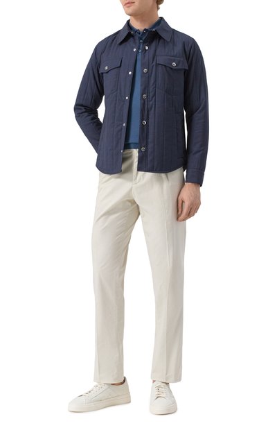 Для пошива куртки Cossaton на синтетическом утеплителе использовали шерстяную ткань, усиленную полиамидом. Модель с боковыми карманами, нагрудными с клапанами и внутренним с молнией дополнили съемной нейлоновой манишкой с воротником-стойкой.