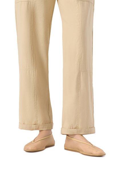 Балетки с V-образным вырезом, повторяющим форму мыса, сшили из гладкой кожи. Модель на небольшом каблуке органично впишется и в повседневный, и в более строгий офисный образ.
