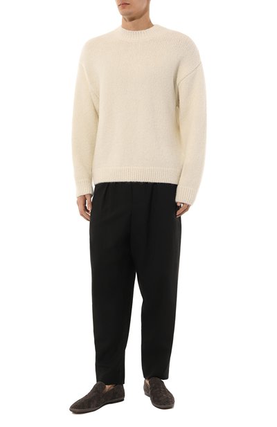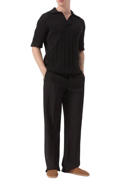 Замшевые слиперы Strasacco выполнены по технологии Sacchetto, которая обеспечивает гибкость и легкость пары. Модель установили на тонкую кожаную подошву, окрашенную вручную, а задник дополнили петлей.
